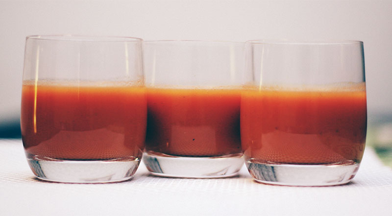 Gaspacho – potage à base de légumes crus mixés servi froid (tomate, concombre, poivron, oignon)